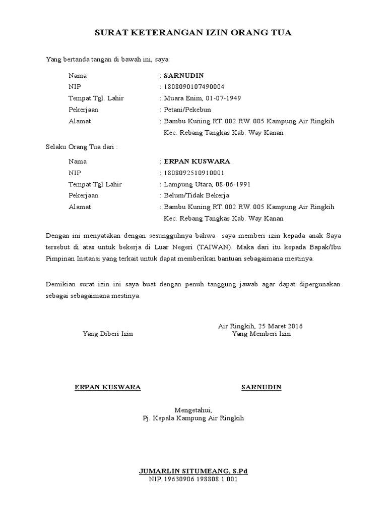 Surat panggilan orang tua biasanya dipergunakan oleh pihak sekolah dan ditujukan kepada orang tua siswa. Nama lengkap pekerjaan alamat rumah. Use the download button below or simple online reader. Contoh surat izin orang tua untuk bekerja di luar negeri. Hal ini karena, unsur ini yang nantinya akan menentukan apakah.